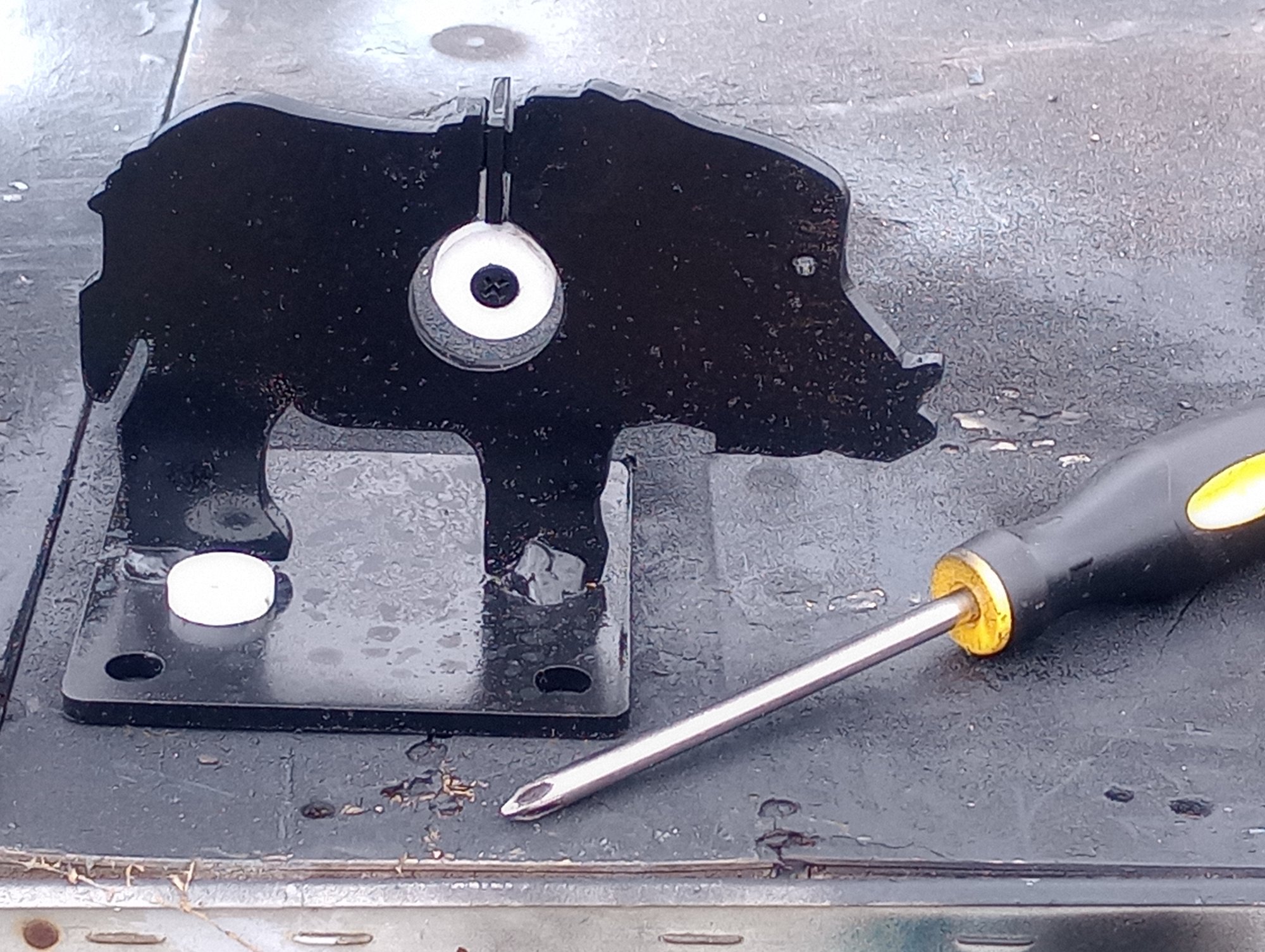 the boar is a medium size target with are replaceable paddles. the paddle sizes are 3/4 and 7/8.